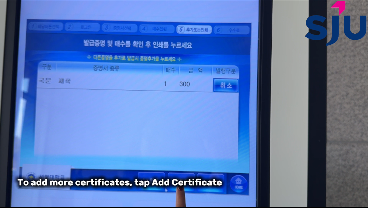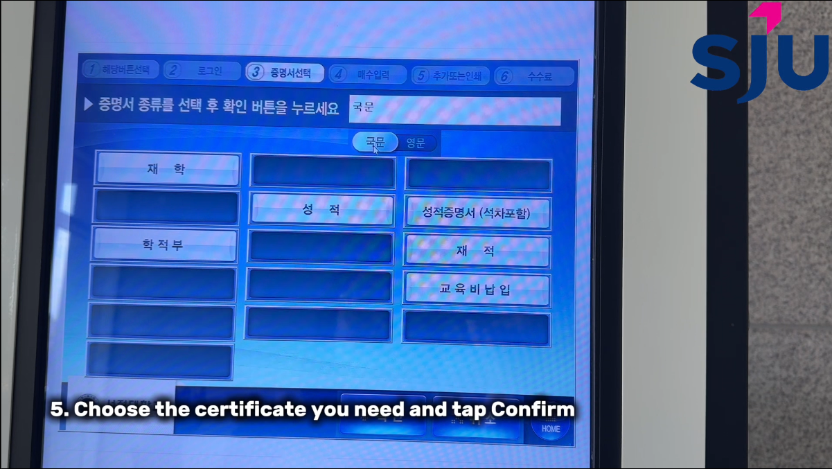 ④ Choose the certificate language (Korean/English).