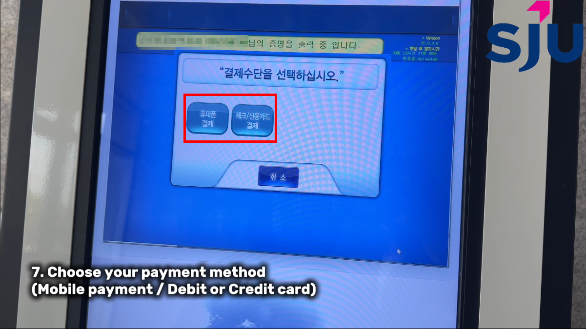 ⑦ Choose your payment method (Mobile payment / Debit or Credit card).