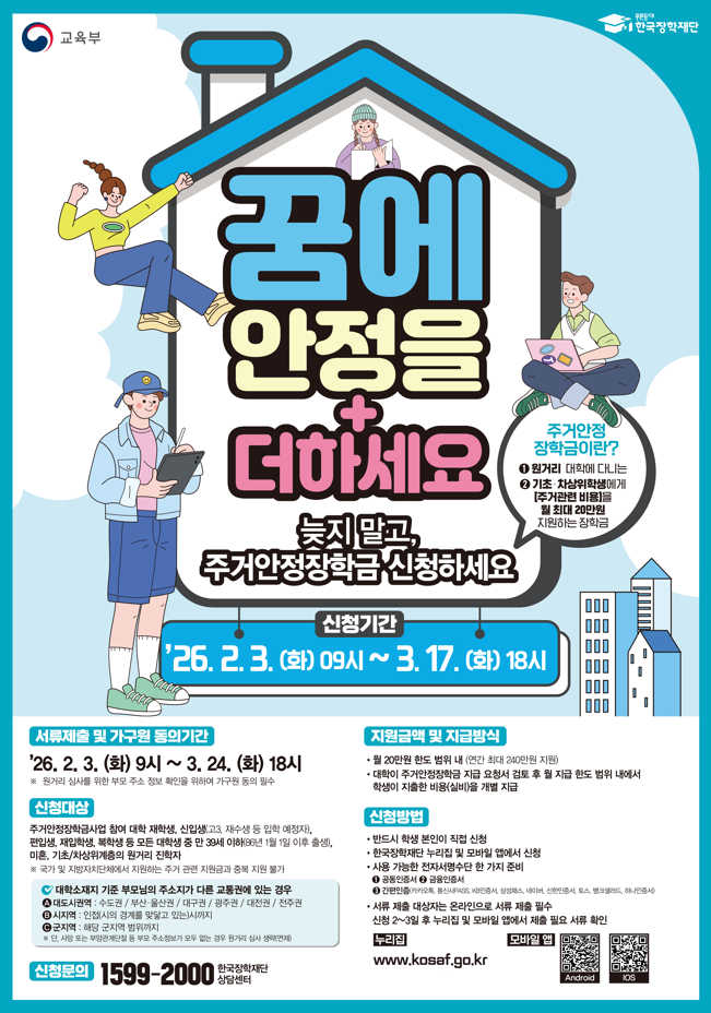< 2026학년도 1학기 2차 주거안정장학금 신청 안내 >